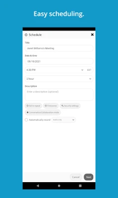 ● Schedule calls on the go or start a call on-the-fly with the click of a button